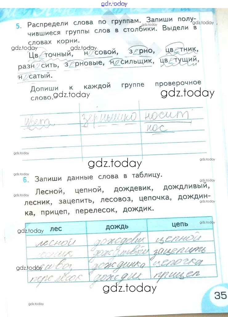 На страницах сайта gdz.today вы найдете учебный и вспомогательный материал, направленный на улучшения знаний школьной программы. ГДЗ - онлайн мир знаний Решение к части 2. Страницы 35 Рабочей тетради по Русскому языку для 2 класса Тихомирова Экзамен УМК 2019