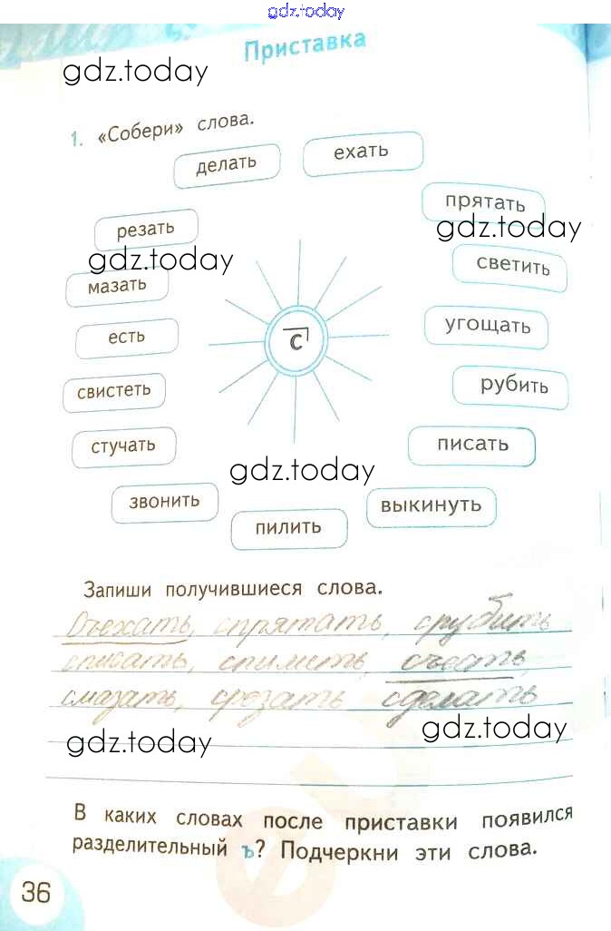 На страницах сайта gdz.today вы найдете учебный и вспомогательный материал, направленный на улучшения знаний школьной программы. ГДЗ - онлайн мир знаний Решение к части 2. Страницы 36 Рабочей тетради по Русскому языку для 2 класса Тихомирова Экзамен УМК 2019