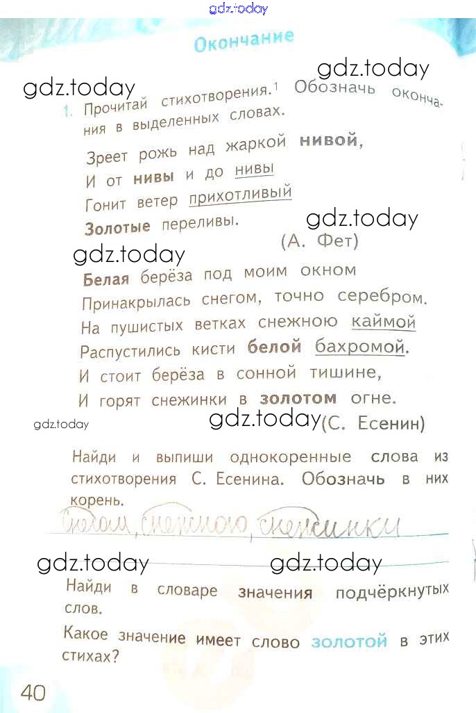 На страницах сайта gdz.today вы найдете учебный и вспомогательный материал, направленный на улучшения знаний школьной программы. ГДЗ - онлайн мир знаний Решение к части 2. Страницы 40 Рабочей тетради по Русскому языку для 2 класса Тихомирова Экзамен УМК 2019