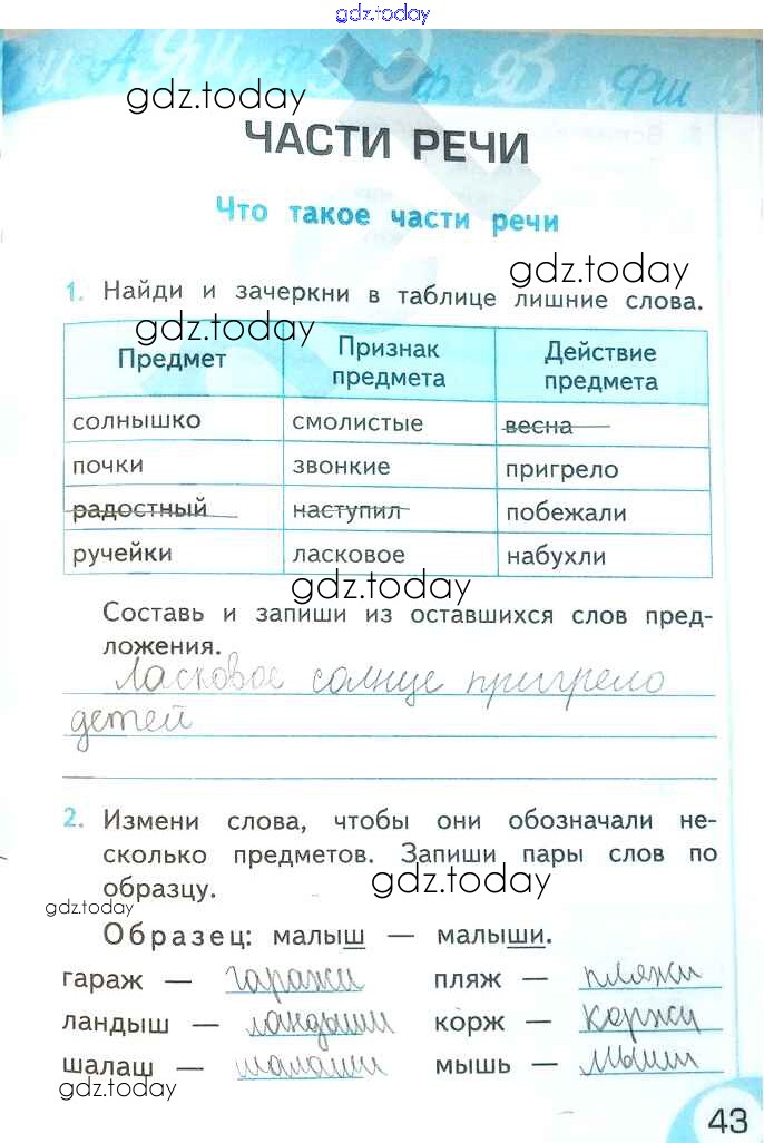 На страницах сайта gdz.today вы найдете учебный и вспомогательный материал, направленный на улучшения знаний школьной программы. ГДЗ - онлайн мир знаний Решение к части 2. Страницы 43 Рабочей тетради по Русскому языку для 2 класса Тихомирова Экзамен УМК 2019