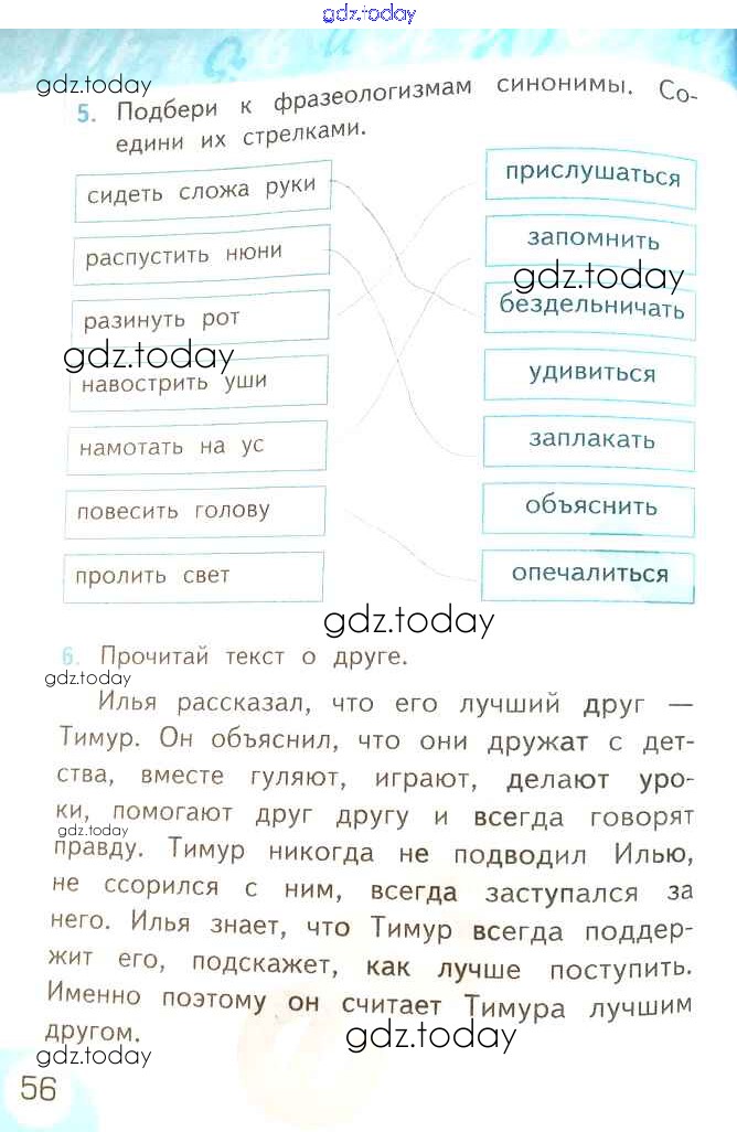 На страницах сайта gdz.today вы найдете учебный и вспомогательный материал, направленный на улучшения знаний школьной программы. ГДЗ - онлайн мир знаний Решение к части 2. Страницы 56 Рабочей тетради по Русскому языку для 2 класса Тихомирова Экзамен УМК 2019