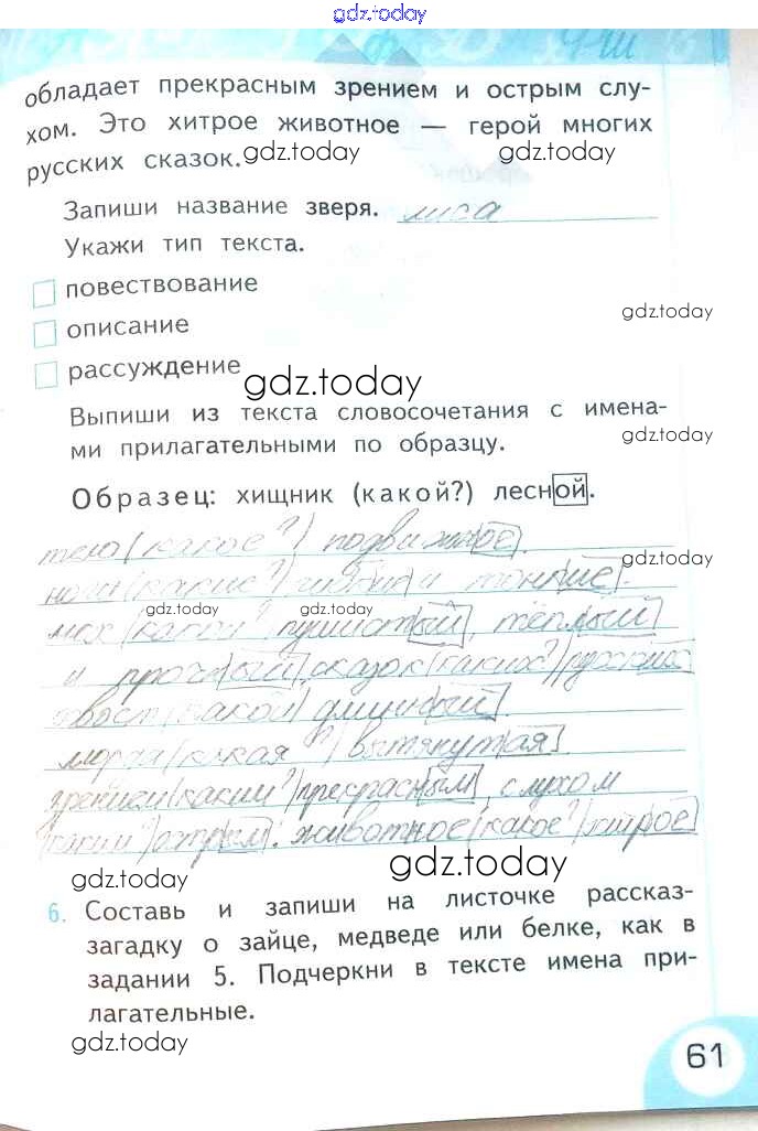 На страницах сайта gdz.today вы найдете учебный и вспомогательный материал, направленный на улучшения знаний школьной программы. ГДЗ - онлайн мир знаний Решение к части 2. Страницы 61 Рабочей тетради по Русскому языку для 2 класса Тихомирова Экзамен УМК 2019