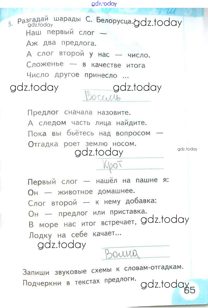 На страницах сайта gdz.today вы найдете учебный и вспомогательный материал, направленный на улучшения знаний школьной программы. ГДЗ - онлайн мир знаний Решение к части 2. Страницы 65 Рабочей тетради по Русскому языку для 2 класса Тихомирова Экзамен УМК 2019