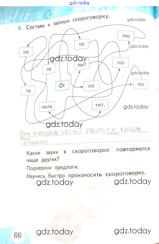На страницах сайта gdz.today вы найдете учебный и вспомогательный материал, направленный на улучшения знаний школьной программы. ГДЗ - онлайн мир знаний Решение к части 2. Страницы 66 Рабочей тетради по Русскому языку для 2 класса Тихомирова Экзамен УМК 2019