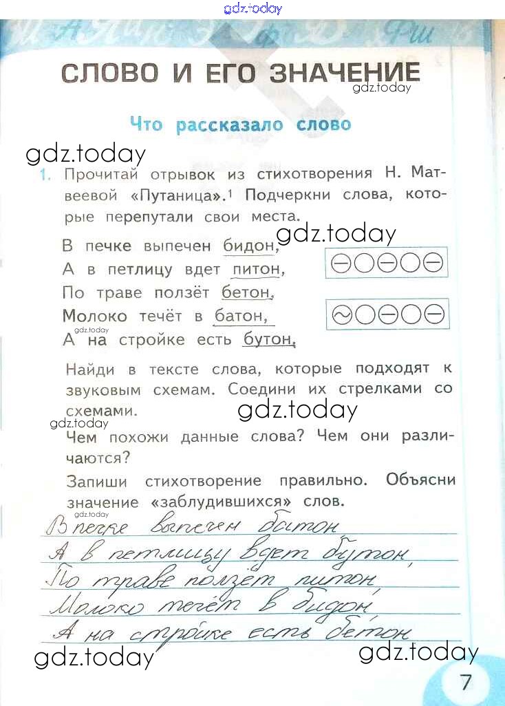 На страницах сайта gdz.today вы найдете учебный и вспомогательный материал, направленный на улучшения знаний школьной программы. ГДЗ - онлайн мир знаний Решение к части 2. Страницы 7 Рабочей тетради по Русскому языку для 2 класса Тихомирова Экзамен УМК 2019