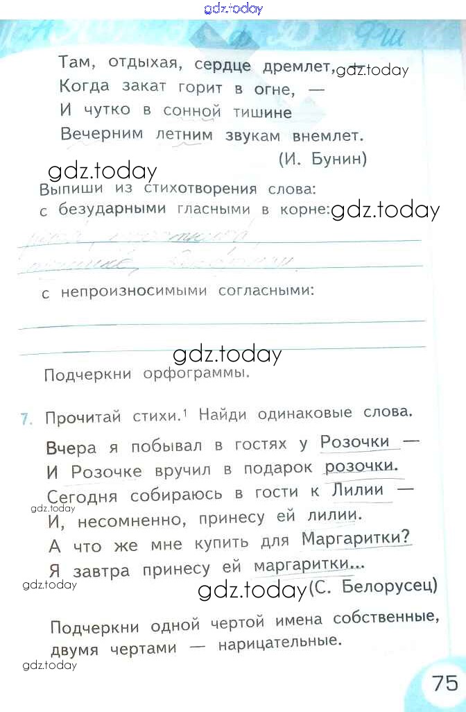 На страницах сайта gdz.today вы найдете учебный и вспомогательный материал, направленный на улучшения знаний школьной программы. ГДЗ - онлайн мир знаний Решение к части 2. Страницы 75 Рабочей тетради по Русскому языку для 2 класса Тихомирова Экзамен УМК 2019