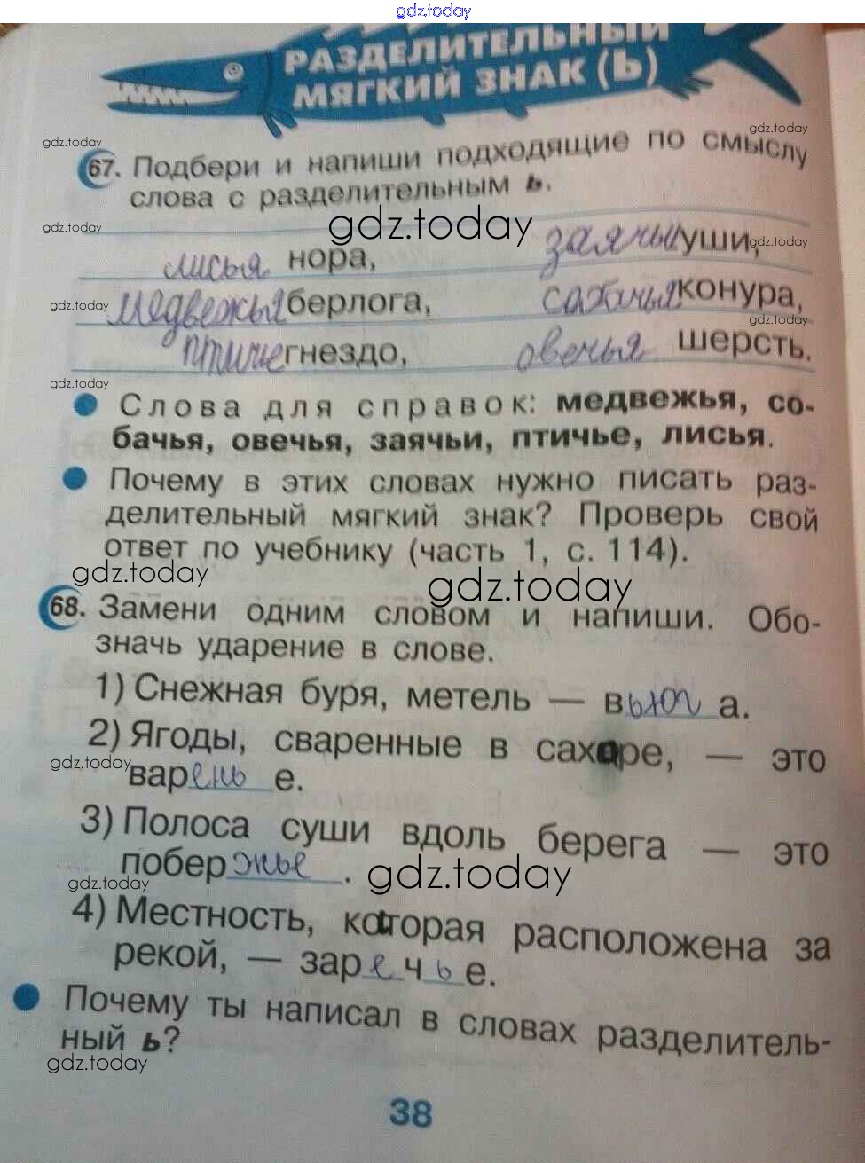 На страницах сайта gdz.today вы найдете учебный и вспомогательный материал, направленный на улучшения знаний школьной программы. ГДЗ - онлайн мир знаний Страницы (решение) 38 Тетради для упражнений по Русскому языку для 2 класса Рамзаева, Савинкина Дрофа Ритм 2018