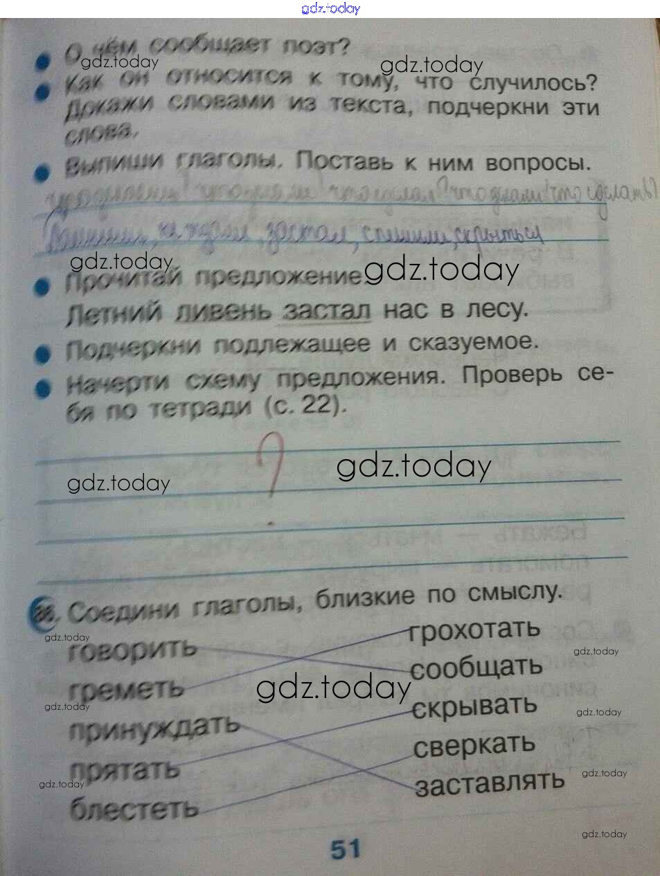 На страницах сайта gdz.today вы найдете учебный и вспомогательный материал, направленный на улучшения знаний школьной программы. ГДЗ - онлайн мир знаний Страницы (решение) 51 Тетради для упражнений по Русскому языку для 2 класса Рамзаева, Савинкина Дрофа Ритм 2018