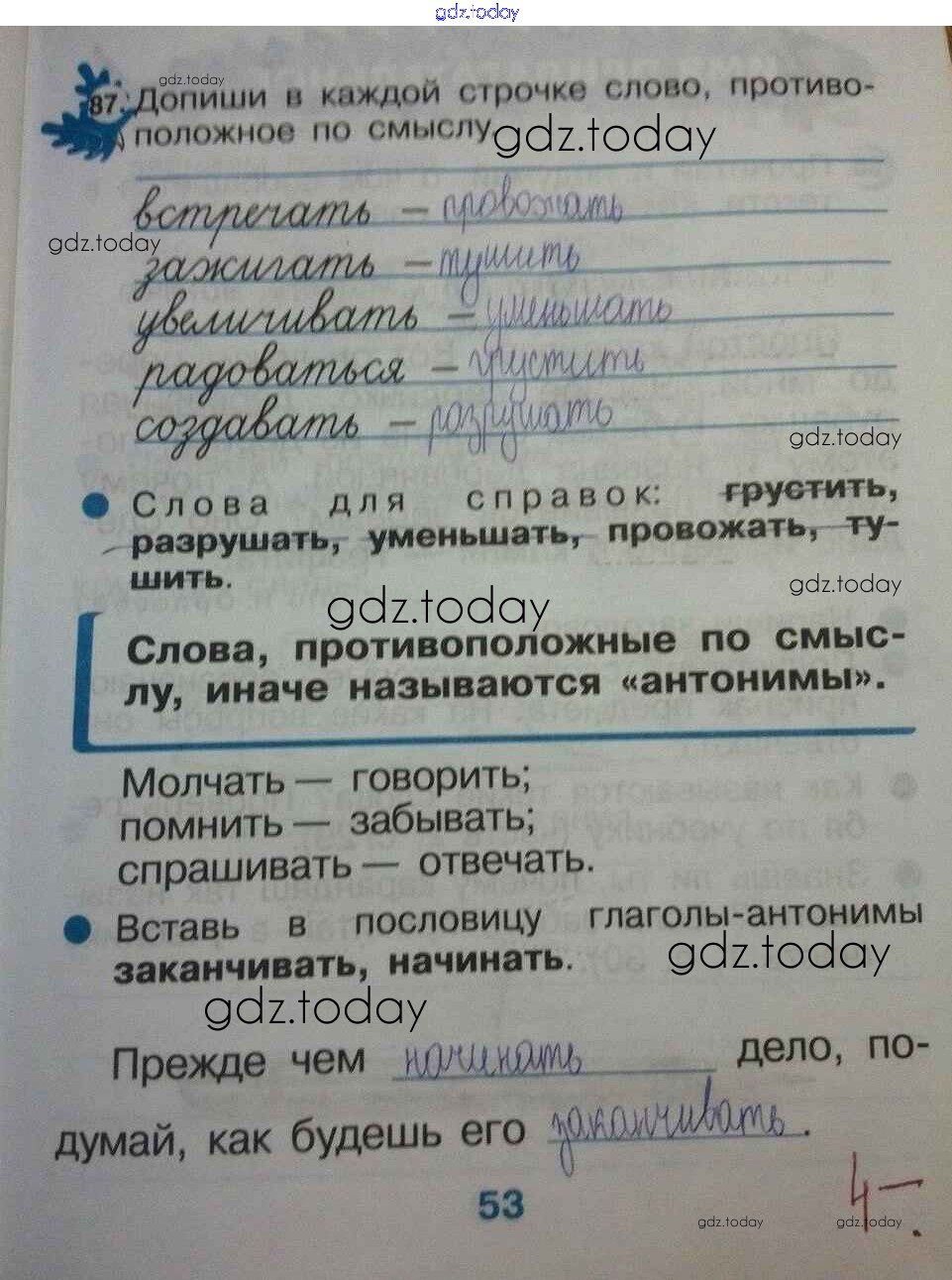 На страницах сайта gdz.today вы найдете учебный и вспомогательный материал, направленный на улучшения знаний школьной программы. ГДЗ - онлайн мир знаний Страницы (решение) 53 Тетради для упражнений по Русскому языку для 2 класса Рамзаева, Савинкина Дрофа Ритм 2018