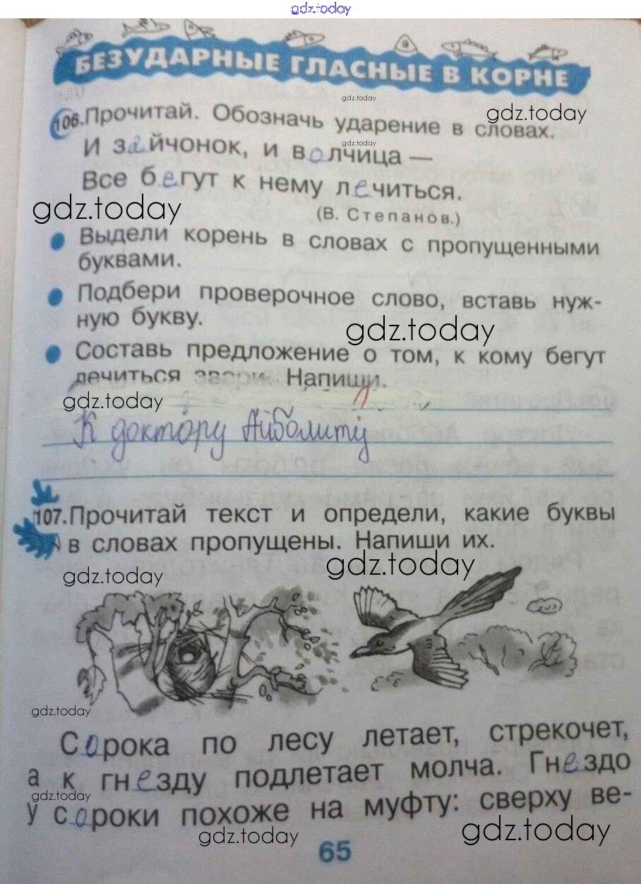 На страницах сайта gdz.today вы найдете учебный и вспомогательный материал, направленный на улучшения знаний школьной программы. ГДЗ - онлайн мир знаний Страницы (решение) 65 Тетради для упражнений по Русскому языку для 2 класса Рамзаева, Савинкина Дрофа Ритм 2018