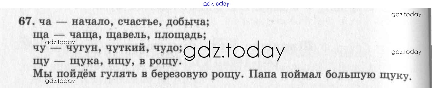 На страницах сайта gdz.today вы найдете учебный и вспомогательный материал, направленный на улучшения знаний школьной программы. ГДЗ - онлайн мир знаний Сочетания ча,ща,чу,щу Решение к части 1 67 Учебнику по Русскому языку для 2 класса Рамзаева Дрофа УМК 2011