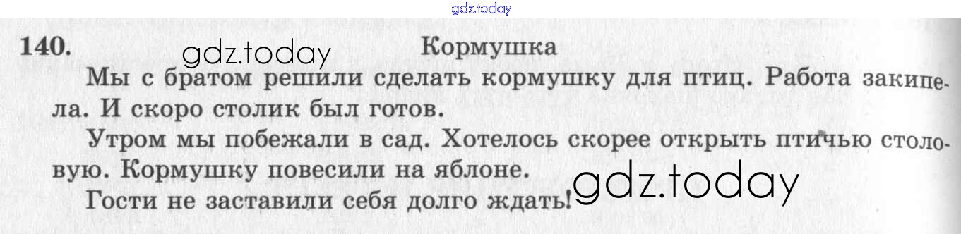 На страницах сайта gdz.today вы найдете учебный и вспомогательный материал, направленный на улучшения знаний школьной программы. ГДЗ - онлайн мир знаний Предложение и текст Решение к части 1 140 Учебнику по Русскому языку для 2 класса Рамзаева Дрофа УМК 2011