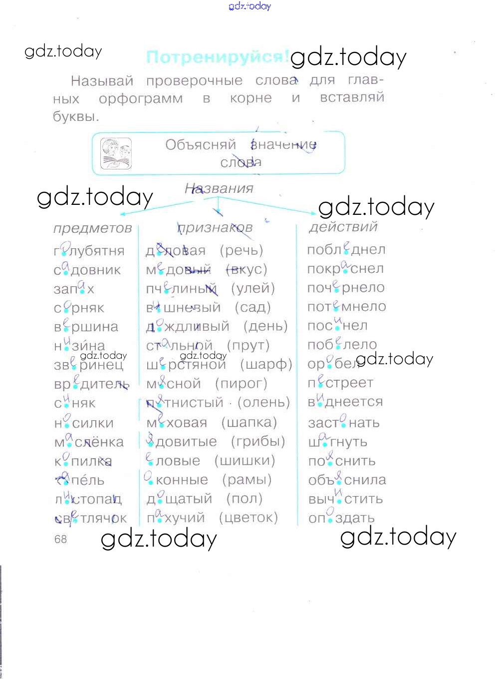 На страницах сайта gdz.today вы найдете учебный и вспомогательный материал, направленный на улучшения знаний школьной программы. ГДЗ - онлайн мир знаний Решение к части 1. Страницы 68 Рабочей тетради по Русскому языку для 2 класса Соловейчик, Кузьменко Ассоциация 21 век Гармония 2012