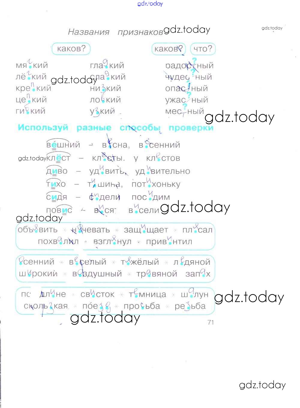Ответы к Решение к части 1. Страницы 71 Рабочей тетради по Русскому языку для 2 класса Соловейчик, Кузьменко Ассоциация 21 век Гармония 2012