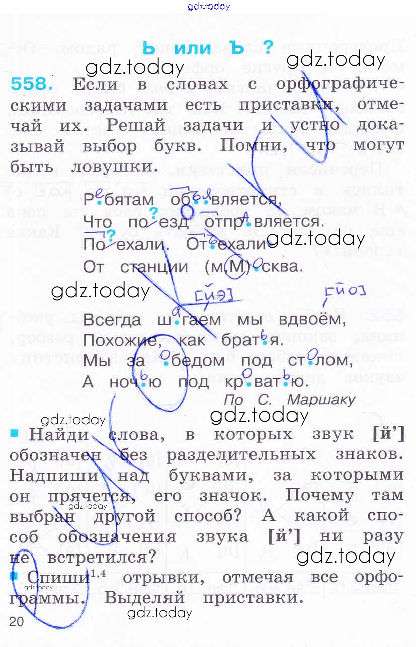 На страницах сайта gdz.today вы найдете учебный и вспомогательный материал, направленный на улучшения знаний школьной программы. ГДЗ - онлайн мир знаний Решение к части 2. Страницы 20 Рабочей тетради по Русскому языку для 2 класса Соловейчик, Кузьменко Ассоциация 21 век Гармония 2012
