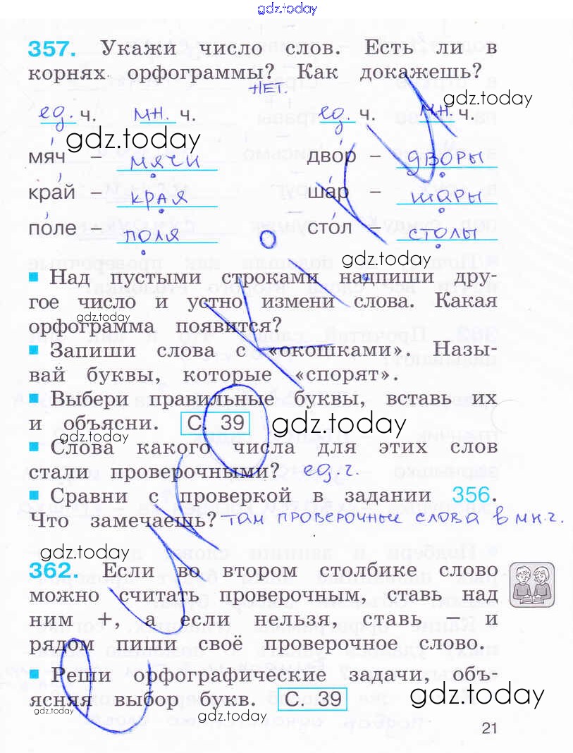 На страницах сайта gdz.today вы найдете учебный и вспомогательный материал, направленный на улучшения знаний школьной программы. ГДЗ - онлайн мир знаний Решение к части 2. Страницы 21 Рабочей тетради по Русскому языку для 2 класса Соловейчик, Кузьменко Ассоциация 21 век Гармония 2012