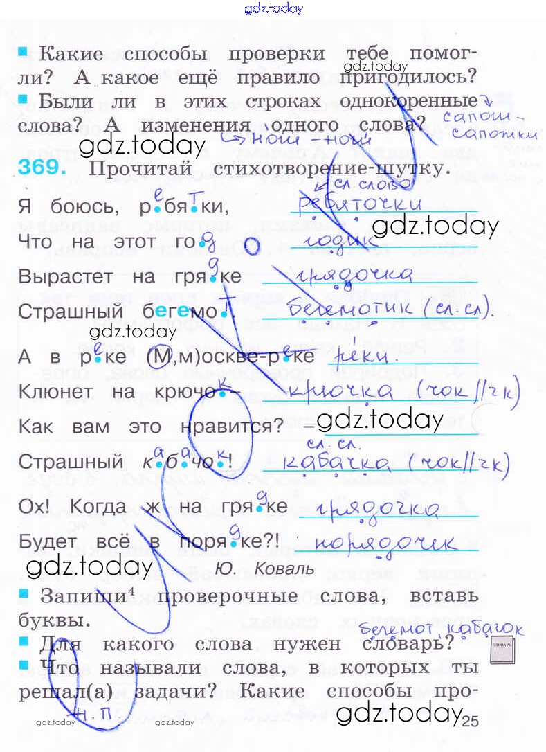На страницах сайта gdz.today вы найдете учебный и вспомогательный материал, направленный на улучшения знаний школьной программы. ГДЗ - онлайн мир знаний Решение к части 2. Страницы 25 Рабочей тетради по Русскому языку для 2 класса Соловейчик, Кузьменко Ассоциация 21 век Гармония 2012