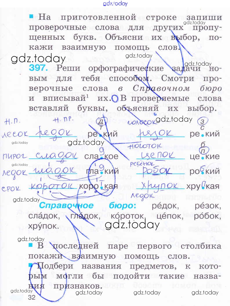 На страницах сайта gdz.today вы найдете учебный и вспомогательный материал, направленный на улучшения знаний школьной программы. ГДЗ - онлайн мир знаний Решение к части 2. Страницы 32 Рабочей тетради по Русскому языку для 2 класса Соловейчик, Кузьменко Ассоциация 21 век Гармония 2012