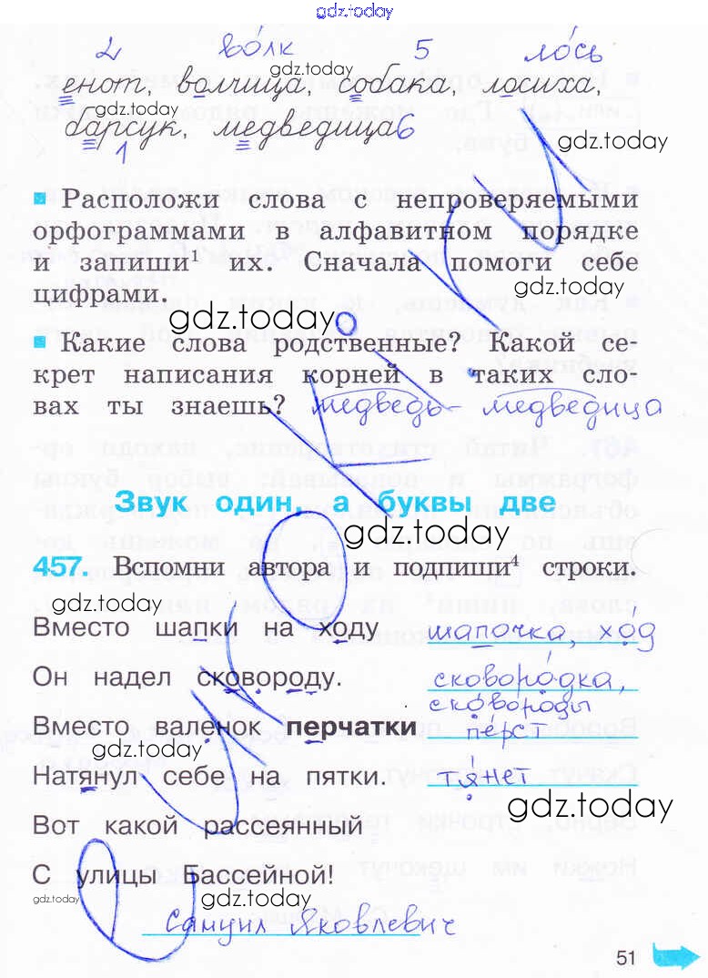 На страницах сайта gdz.today вы найдете учебный и вспомогательный материал, направленный на улучшения знаний школьной программы. ГДЗ - онлайн мир знаний Решение к части 2. Страницы 51 Рабочей тетради по Русскому языку для 2 класса Соловейчик, Кузьменко Ассоциация 21 век Гармония 2012