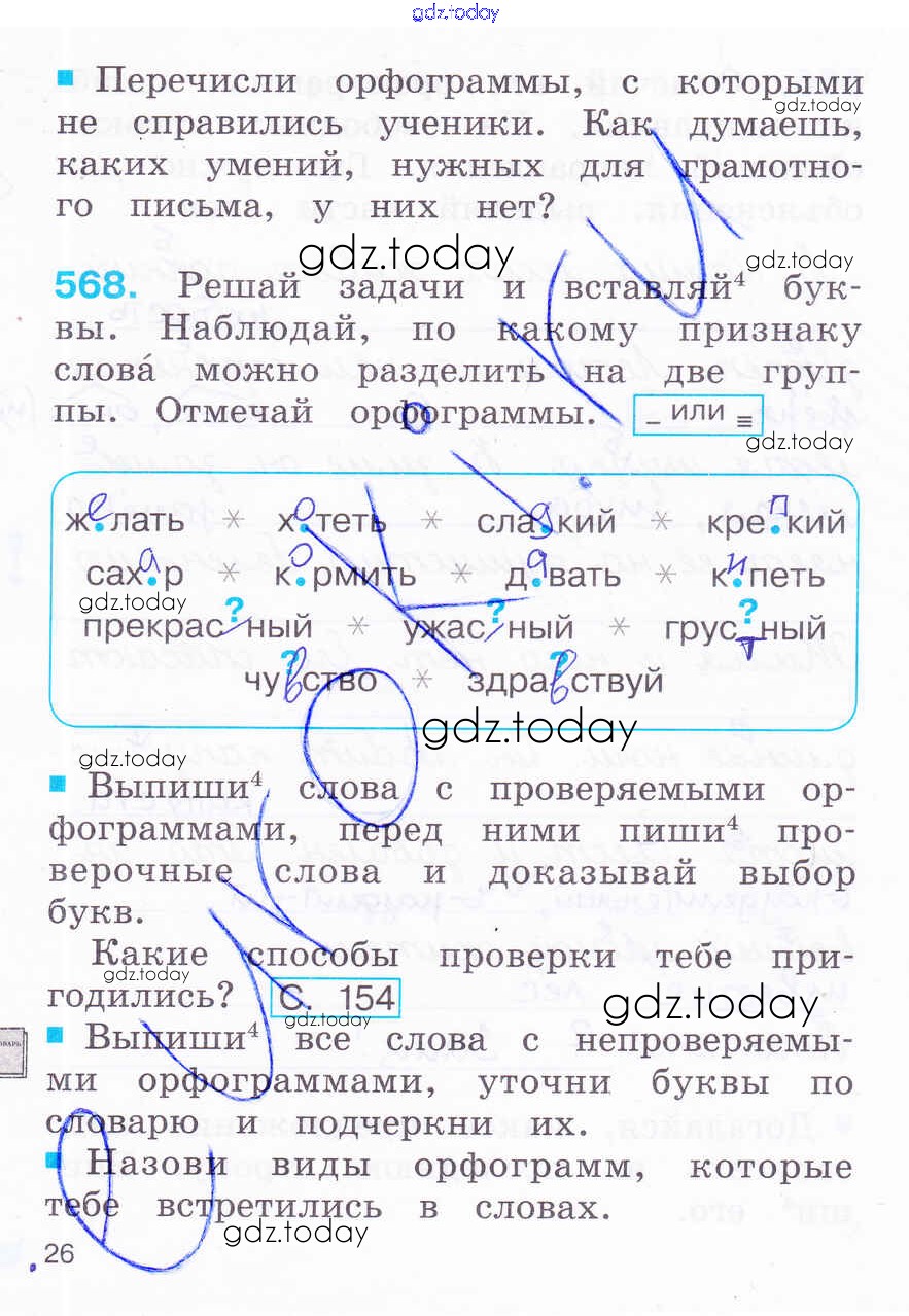 На страницах сайта gdz.today вы найдете учебный и вспомогательный материал, направленный на улучшения знаний школьной программы. ГДЗ - онлайн мир знаний Решение к части 3. Страницы 26 Рабочей тетради по Русскому языку для 2 класса Соловейчик, Кузьменко Ассоциация 21 век Гармония 2012