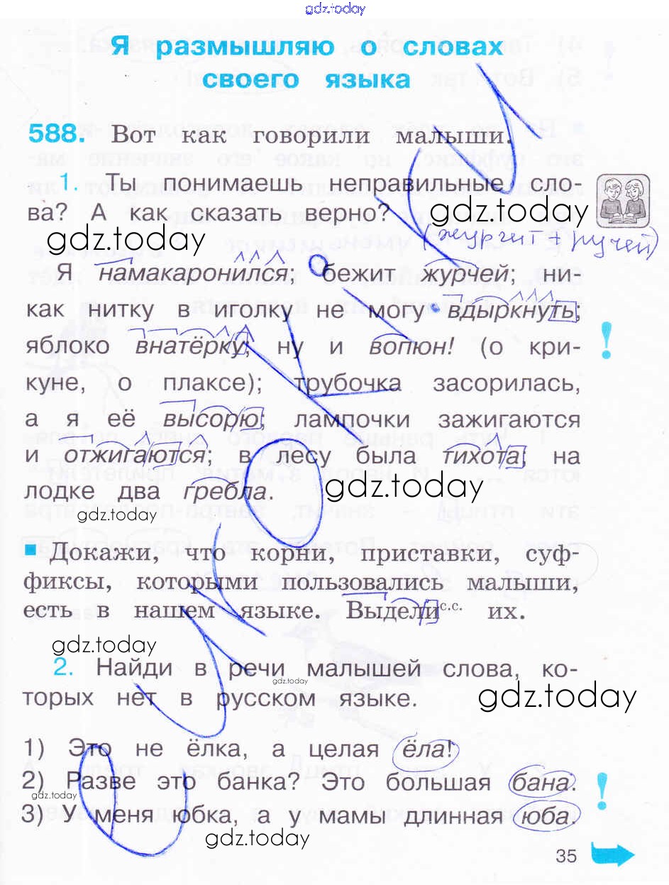 На страницах сайта gdz.today вы найдете учебный и вспомогательный материал, направленный на улучшения знаний школьной программы. ГДЗ - онлайн мир знаний Решение к части 3. Страницы 35 Рабочей тетради по Русскому языку для 2 класса Соловейчик, Кузьменко Ассоциация 21 век Гармония 2012