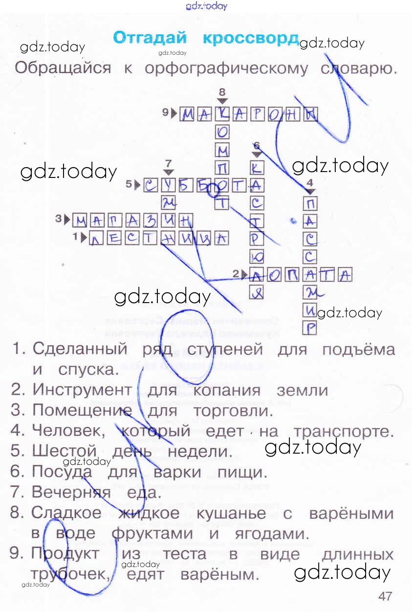 На страницах сайта gdz.today вы найдете учебный и вспомогательный материал, направленный на улучшения знаний школьной программы. ГДЗ - онлайн мир знаний Решение к части 3. Страницы 47 Рабочей тетради по Русскому языку для 2 класса Соловейчик, Кузьменко Ассоциация 21 век Гармония 2012
