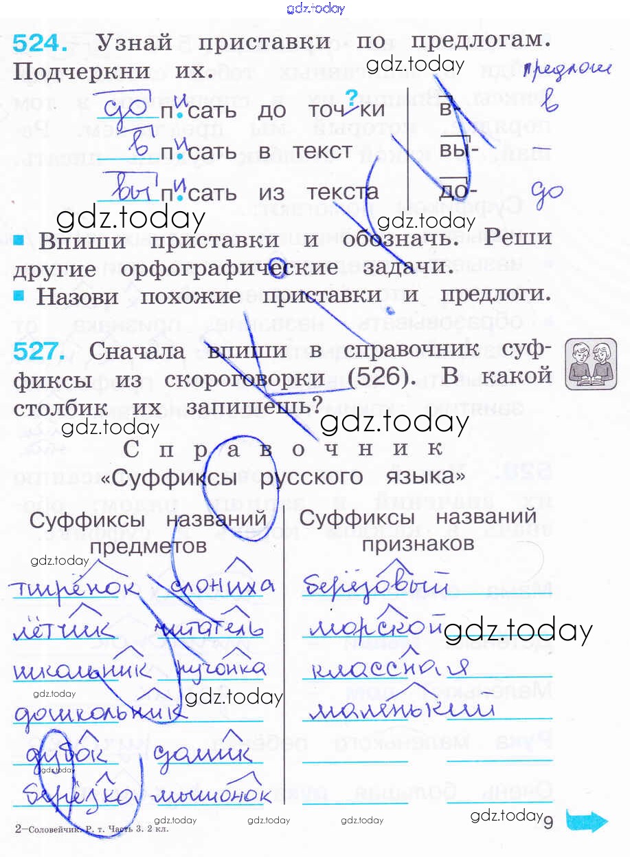 На страницах сайта gdz.today вы найдете учебный и вспомогательный материал, направленный на улучшения знаний школьной программы. ГДЗ - онлайн мир знаний Решение к части 3. Страницы 9 Рабочей тетради по Русскому языку для 2 класса Соловейчик, Кузьменко Ассоциация 21 век Гармония 2012