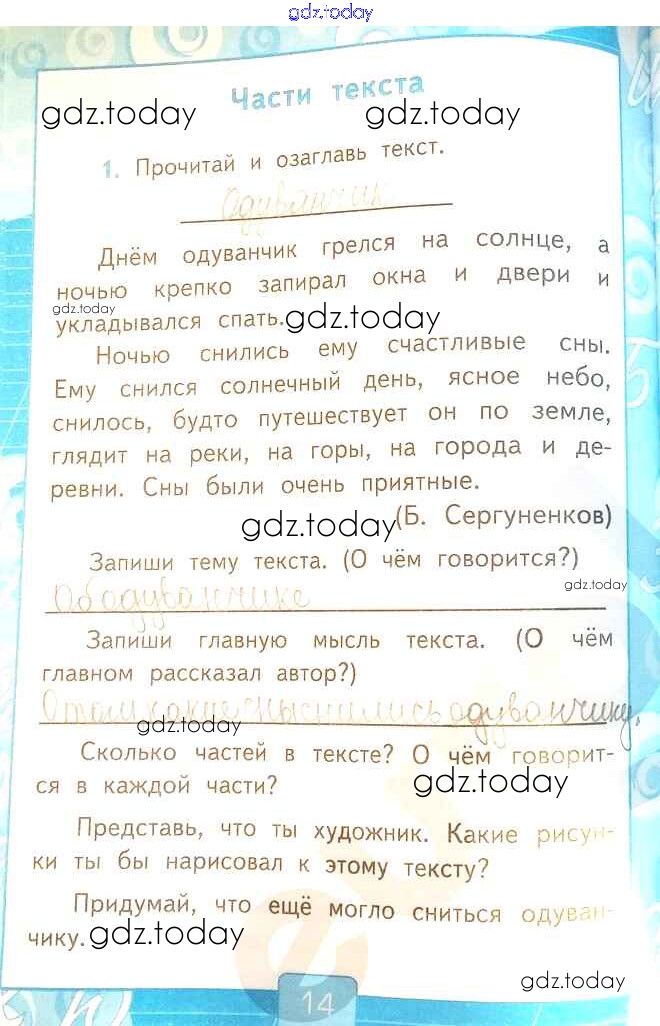 На страницах сайта gdz.today вы найдете учебный и вспомогательный материал, направленный на улучшения знаний школьной программы. ГДЗ - онлайн мир знаний Решение к части 1. Страницы 14 Рабочей тетради по Русскому языку для 2 класса Тихомирова Экзамен УМК 2018
