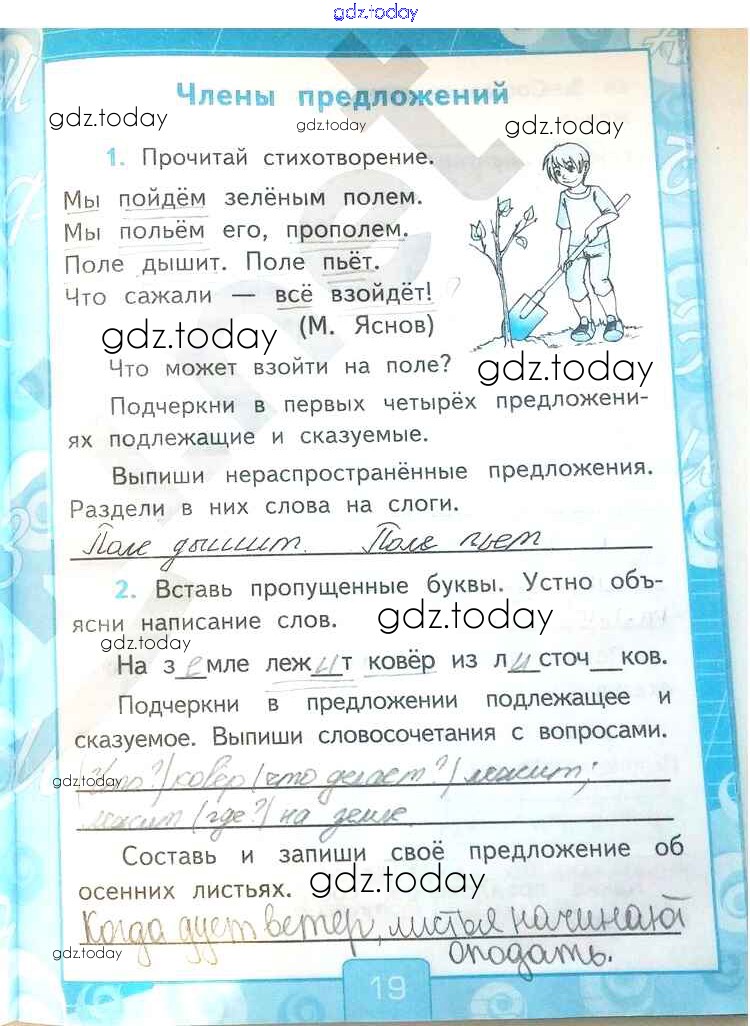 На страницах сайта gdz.today вы найдете учебный и вспомогательный материал, направленный на улучшения знаний школьной программы. ГДЗ - онлайн мир знаний Решение к части 1. Страницы 19 Рабочей тетради по Русскому языку для 2 класса Тихомирова Экзамен УМК 2018
