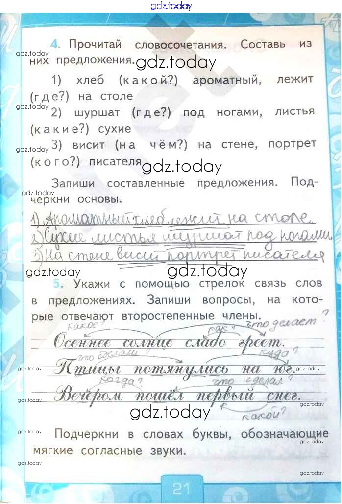 На страницах сайта gdz.today вы найдете учебный и вспомогательный материал, направленный на улучшения знаний школьной программы. ГДЗ - онлайн мир знаний Решение к части 1. Страницы 21 Рабочей тетради по Русскому языку для 2 класса Тихомирова Экзамен УМК 2018