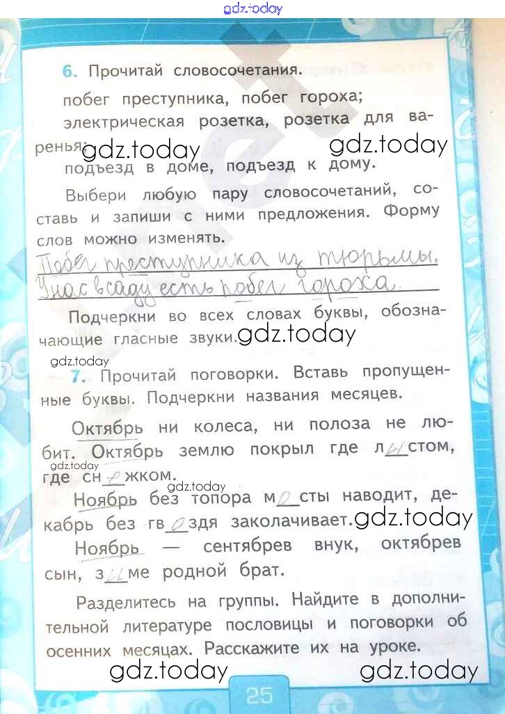 На страницах сайта gdz.today вы найдете учебный и вспомогательный материал, направленный на улучшения знаний школьной программы. ГДЗ - онлайн мир знаний Решение к части 1. Страницы 25 Рабочей тетради по Русскому языку для 2 класса Тихомирова Экзамен УМК 2018