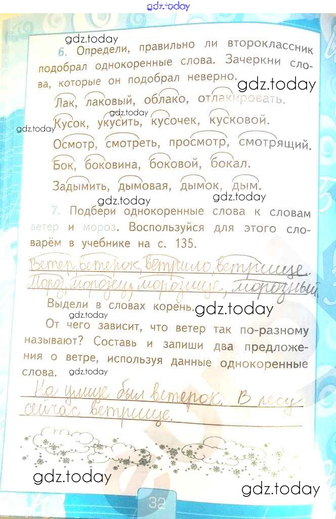 На страницах сайта gdz.today вы найдете учебный и вспомогательный материал, направленный на улучшения знаний школьной программы. ГДЗ - онлайн мир знаний Решение к части 1. Страницы 32 Рабочей тетради по Русскому языку для 2 класса Тихомирова Экзамен УМК 2018