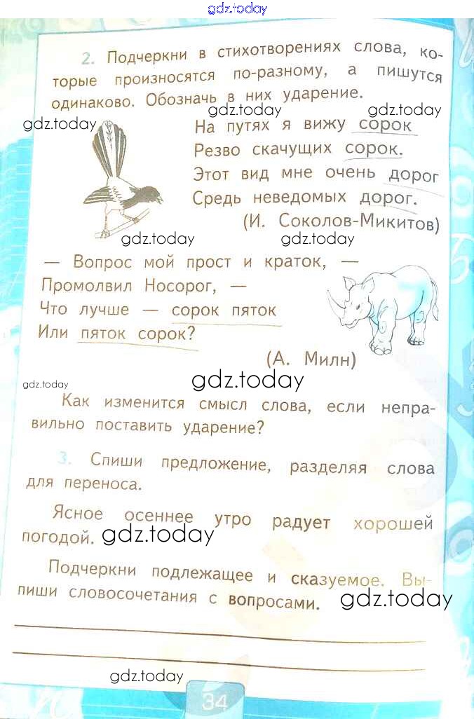 На страницах сайта gdz.today вы найдете учебный и вспомогательный материал, направленный на улучшения знаний школьной программы. ГДЗ - онлайн мир знаний Решение к части 1. Страницы 34 Рабочей тетради по Русскому языку для 2 класса Тихомирова Экзамен УМК 2018