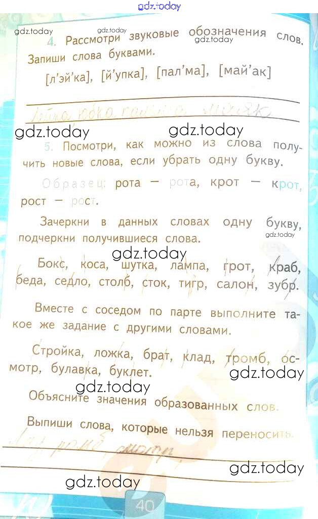 На страницах сайта gdz.today вы найдете учебный и вспомогательный материал, направленный на улучшения знаний школьной программы. ГДЗ - онлайн мир знаний Решение к части 1. Страницы 40 Рабочей тетради по Русскому языку для 2 класса Тихомирова Экзамен УМК 2018