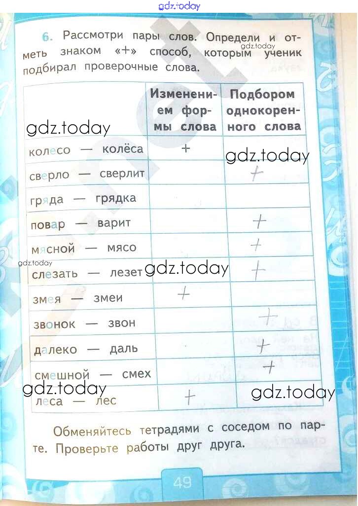 На страницах сайта gdz.today вы найдете учебный и вспомогательный материал, направленный на улучшения знаний школьной программы. ГДЗ - онлайн мир знаний Решение к части 1. Страницы 49 Рабочей тетради по Русскому языку для 2 класса Тихомирова Экзамен УМК 2018