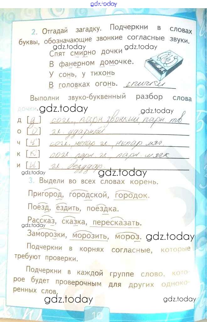 На страницах сайта gdz.today вы найдете учебный и вспомогательный материал, направленный на улучшения знаний школьной программы. ГДЗ - онлайн мир знаний Решение к части 2. Страницы 10 Рабочей тетради по Русскому языку для 2 класса Тихомирова Экзамен УМК 2018