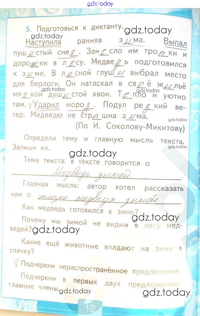 На страницах сайта gdz.today вы найдете учебный и вспомогательный материал, направленный на улучшения знаний школьной программы. ГДЗ - онлайн мир знаний Решение к части 2. Страницы 12 Рабочей тетради по Русскому языку для 2 класса Тихомирова Экзамен УМК 2018