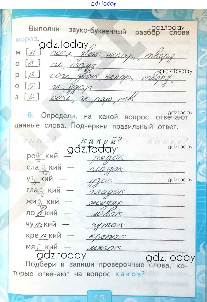 На страницах сайта gdz.today вы найдете учебный и вспомогательный материал, направленный на улучшения знаний школьной программы. ГДЗ - онлайн мир знаний Решение к части 2. Страницы 13 Рабочей тетради по Русскому языку для 2 класса Тихомирова Экзамен УМК 2018