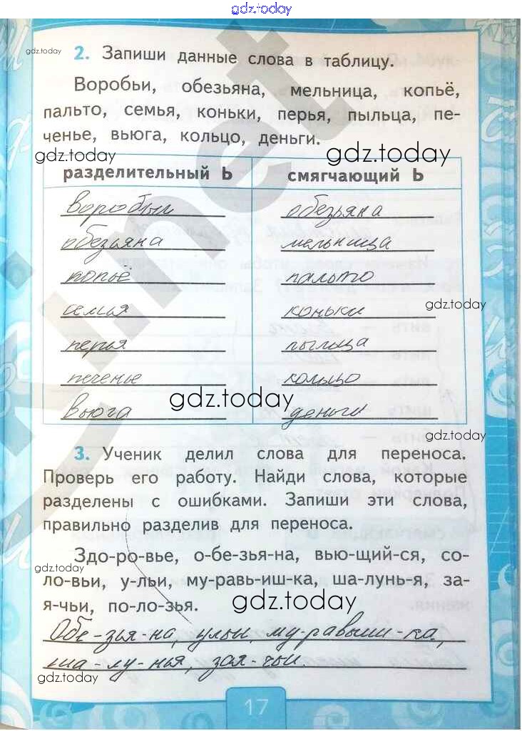 На страницах сайта gdz.today вы найдете учебный и вспомогательный материал, направленный на улучшения знаний школьной программы. ГДЗ - онлайн мир знаний Решение к части 2. Страницы 17 Рабочей тетради по Русскому языку для 2 класса Тихомирова Экзамен УМК 2018