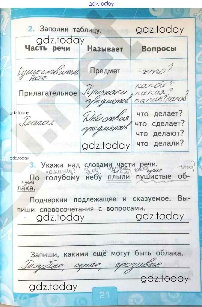 На страницах сайта gdz.today вы найдете учебный и вспомогательный материал, направленный на улучшения знаний школьной программы. ГДЗ - онлайн мир знаний Решение к части 2. Страницы 21 Рабочей тетради по Русскому языку для 2 класса Тихомирова Экзамен УМК 2018