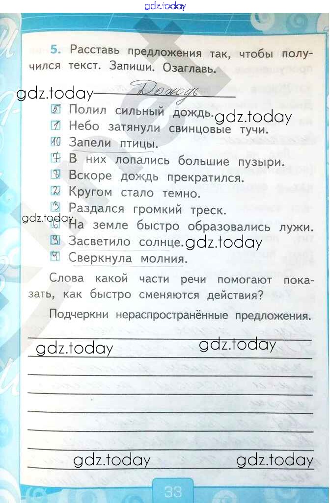 На страницах сайта gdz.today вы найдете учебный и вспомогательный материал, направленный на улучшения знаний школьной программы. ГДЗ - онлайн мир знаний Решение к части 2. Страницы 33 Рабочей тетради по Русскому языку для 2 класса Тихомирова Экзамен УМК 2018