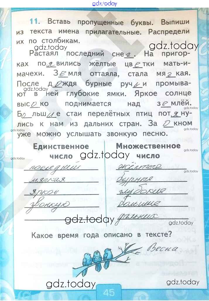 На страницах сайта gdz.today вы найдете учебный и вспомогательный материал, направленный на улучшения знаний школьной программы. ГДЗ - онлайн мир знаний Решение к части 2. Страницы 45 Рабочей тетради по Русскому языку для 2 класса Тихомирова Экзамен УМК 2018