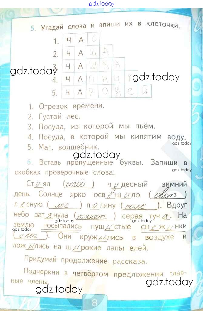 На страницах сайта gdz.today вы найдете учебный и вспомогательный материал, направленный на улучшения знаний школьной программы. ГДЗ - онлайн мир знаний Решение к части 2. Страницы 8 Рабочей тетради по Русскому языку для 2 класса Тихомирова Экзамен УМК 2018