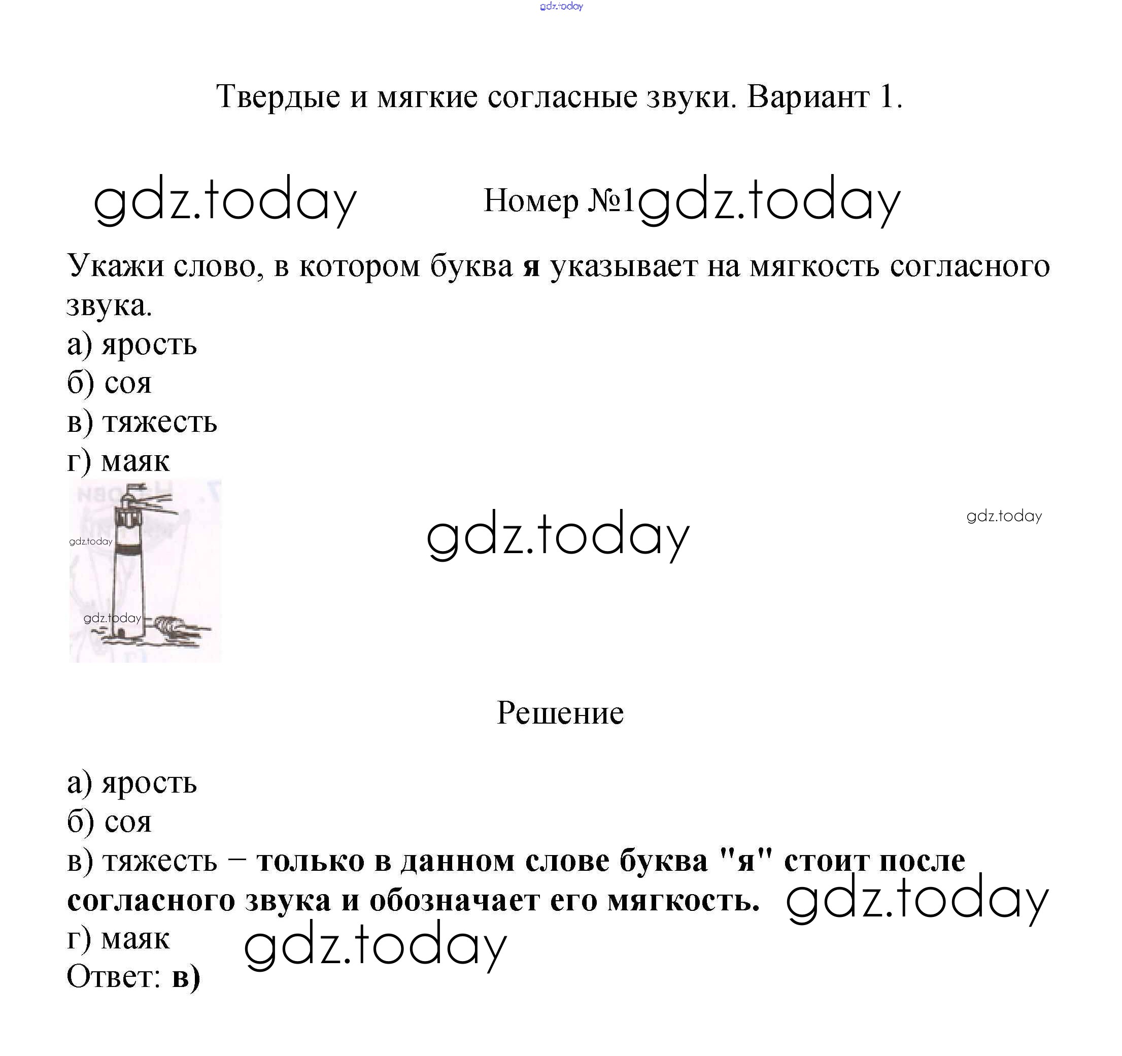 На страницах сайта gdz.today вы найдете учебный и вспомогательный материал, направленный на улучшения знаний школьной программы. ГДЗ - онлайн мир знаний Вариант 1 Решение к тесту 5. Твердые и мягкие согласные звуки. Их обозначение на письме 1 Тестам по Русскому языку для 2 класса Тихомирова Экзамен УМК 2020