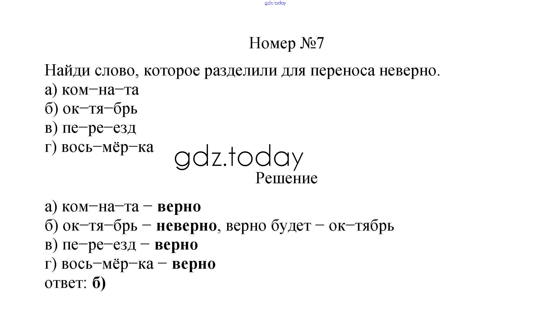 На страницах сайта gdz.today вы найдете учебный и вспомогательный материал, направленный на улучшения знаний школьной программы. ГДЗ - онлайн мир знаний Вариант 1 Решение к тесту 7. Слог. Перенос слов 7 Тестам по Русскому языку для 2 класса Тихомирова Экзамен УМК 2020