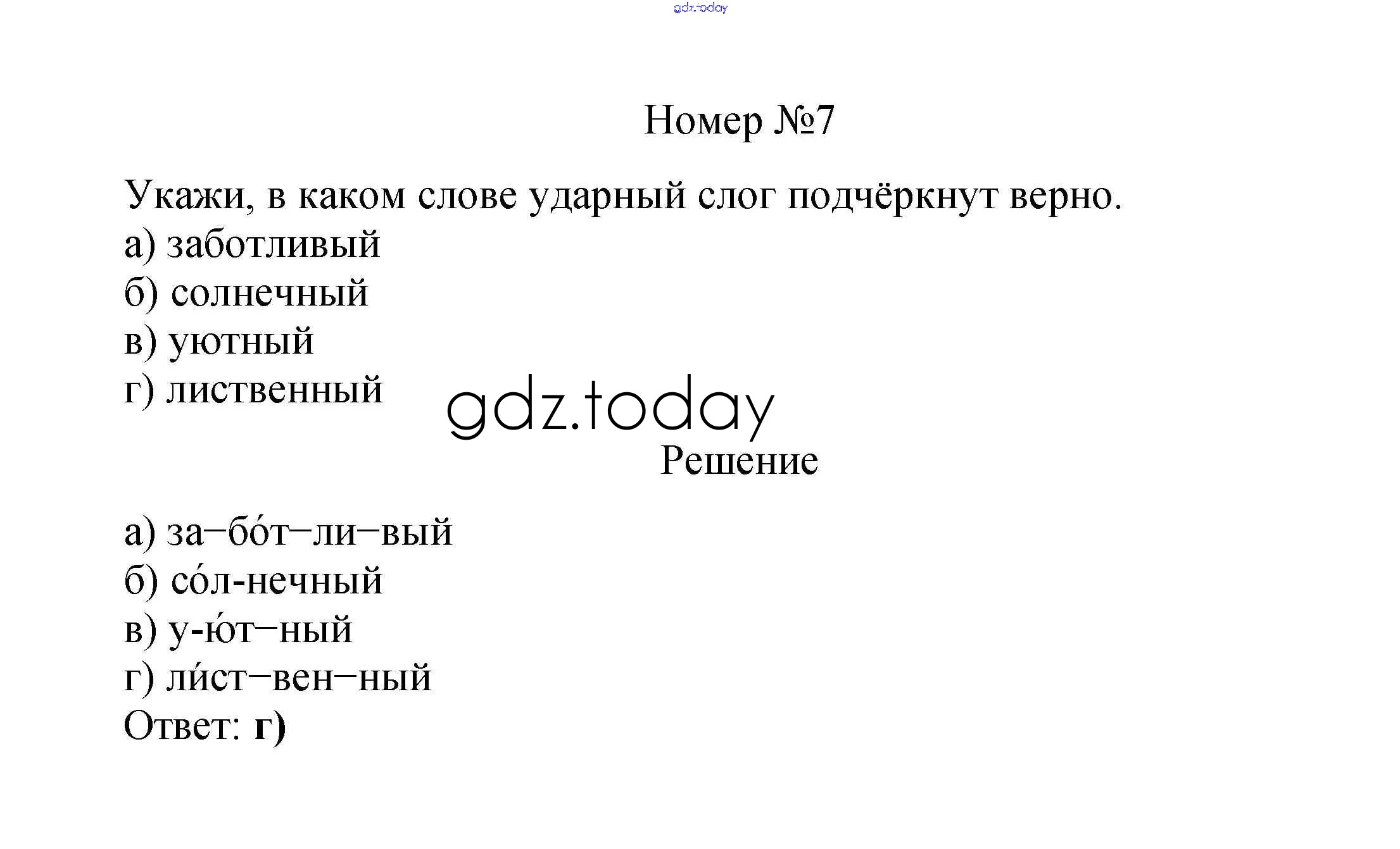 На страницах сайта gdz.today вы найдете учебный и вспомогательный материал, направленный на улучшения знаний школьной программы. ГДЗ - онлайн мир знаний Вариант 1 Решение к тесту 8. Ударение. Ударный слог 7 Тестам по Русскому языку для 2 класса Тихомирова Экзамен УМК 2020