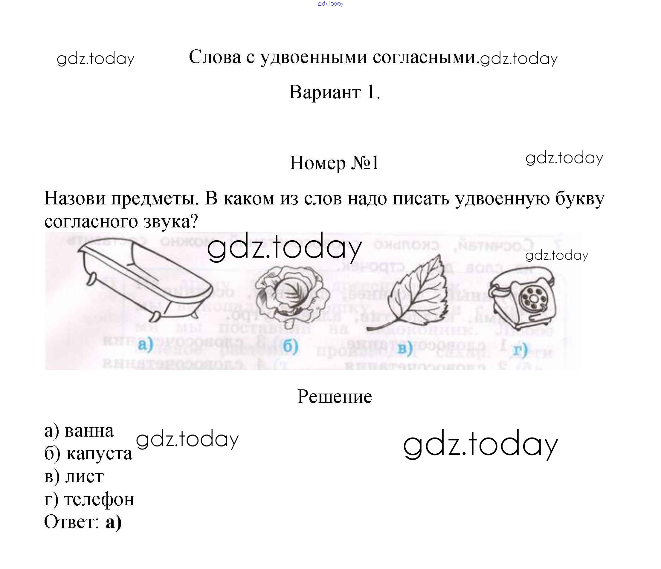 На страницах сайта gdz.today вы найдете учебный и вспомогательный материал, направленный на улучшения знаний школьной программы. ГДЗ - онлайн мир знаний Вариант 1 Решение к тесту 11. Слова с удвоенными согласными 1 Тестам по Русскому языку для 2 класса Тихомирова Экзамен УМК 2020
