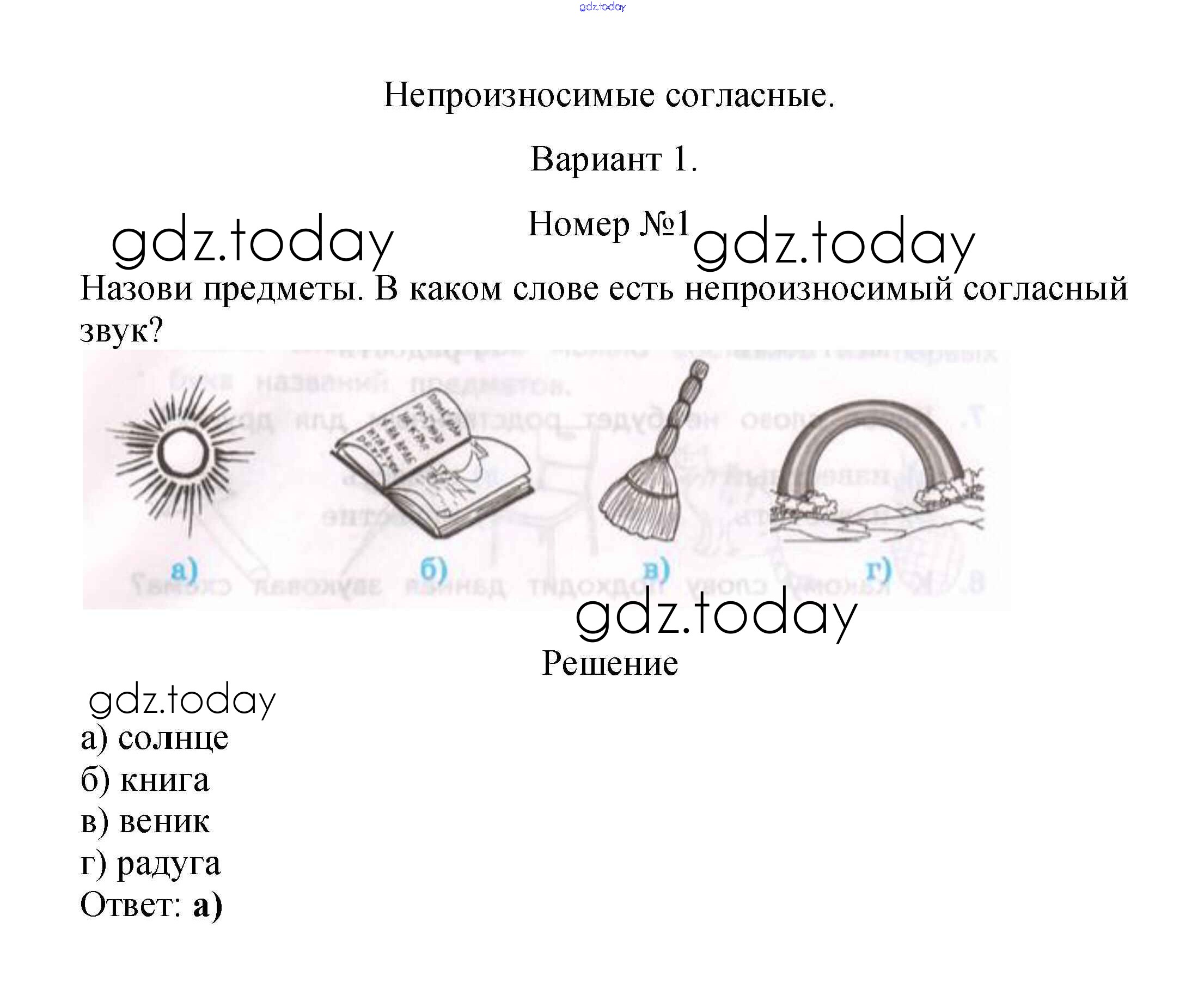 На страницах сайта gdz.today вы найдете учебный и вспомогательный материал, направленный на улучшения знаний школьной программы. ГДЗ - онлайн мир знаний Вариант 1 Решение к тесту 12. Непроизносимые согласные 1 Тестам по Русскому языку для 2 класса Тихомирова Экзамен УМК 2020