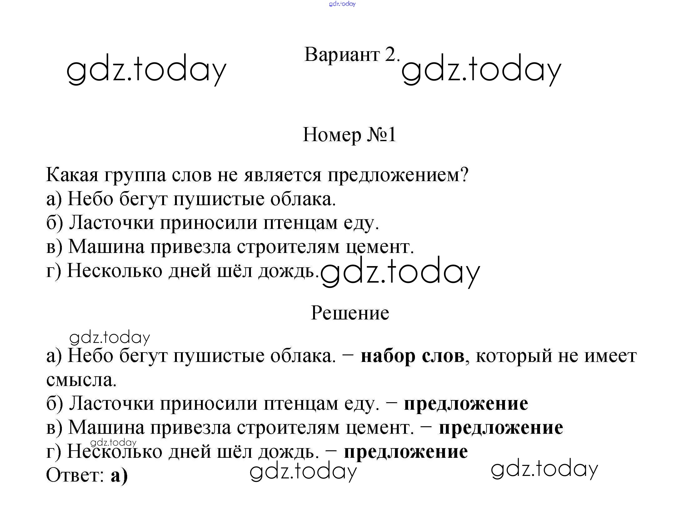 Ответы к Вариант 2 Решение к тесту 28. Предложение. Текст 1 Тестам по Русскому языку для 2 класса Тихомирова Экзамен УМК 2020