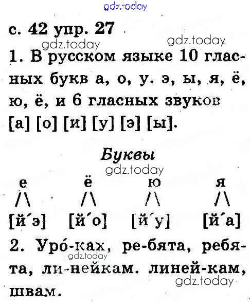 На страницах сайта gdz.today вы найдете учебный и вспомогательный материал, направленный на улучшения знаний школьной программы. ГДЗ - онлайн мир знаний Решение к теме: Звуки и буквы 27 Учебнику по Русскому языку для 2 класса Рудяков, Челышева Грамота 2012